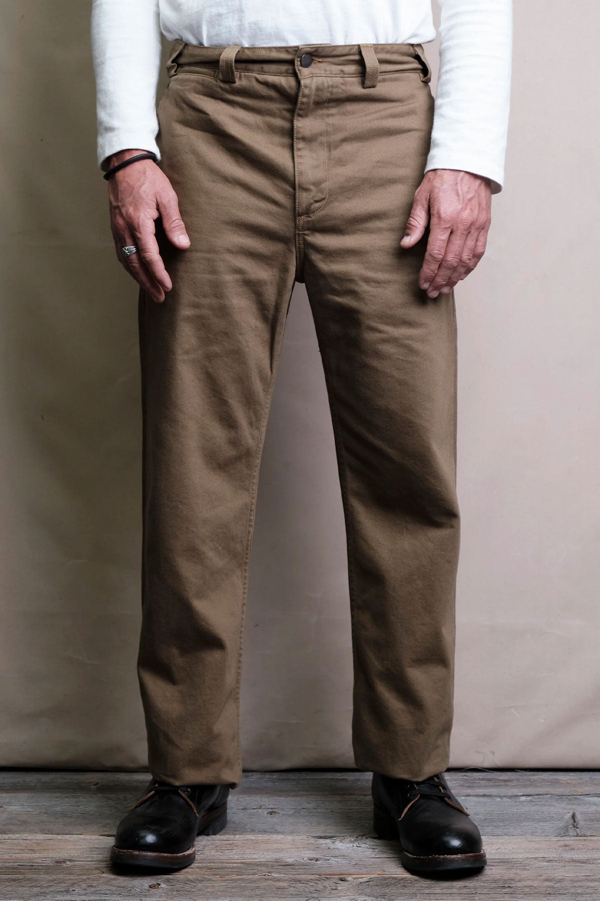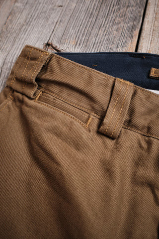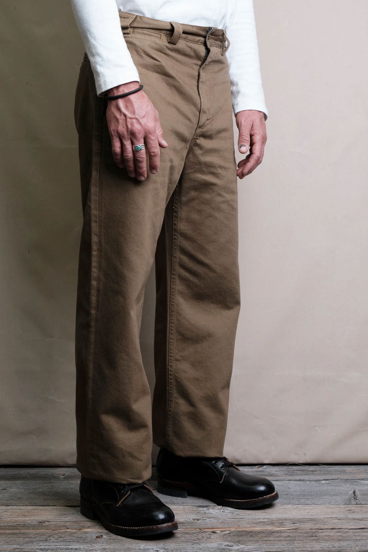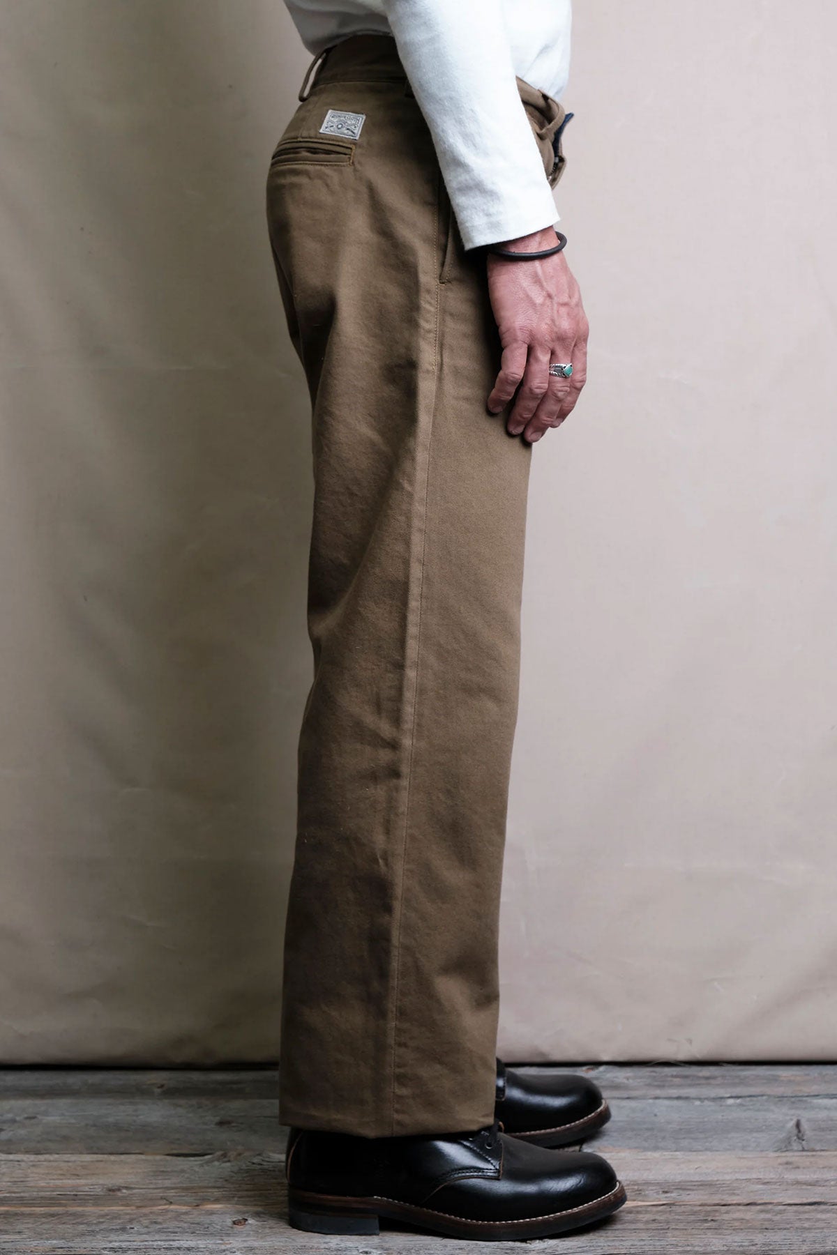 The Shifter Pant | Inspired by classic garage style pants, the fit is generous without being too baggy. Freenote's goal was to design a comfortable pant with a timeless aesthetic. Starting with their Workers Chino as a template, They opened up the top block by adding room to the thigh and giving the pant a higher rise for a more relaxed seat. The leg opening was also widened to create a balanced straight-fit. They employed the same interior finishing details found on the Workers Chino, including a two-piece waistband finished with binding and herringbone pocket bags from Japan.