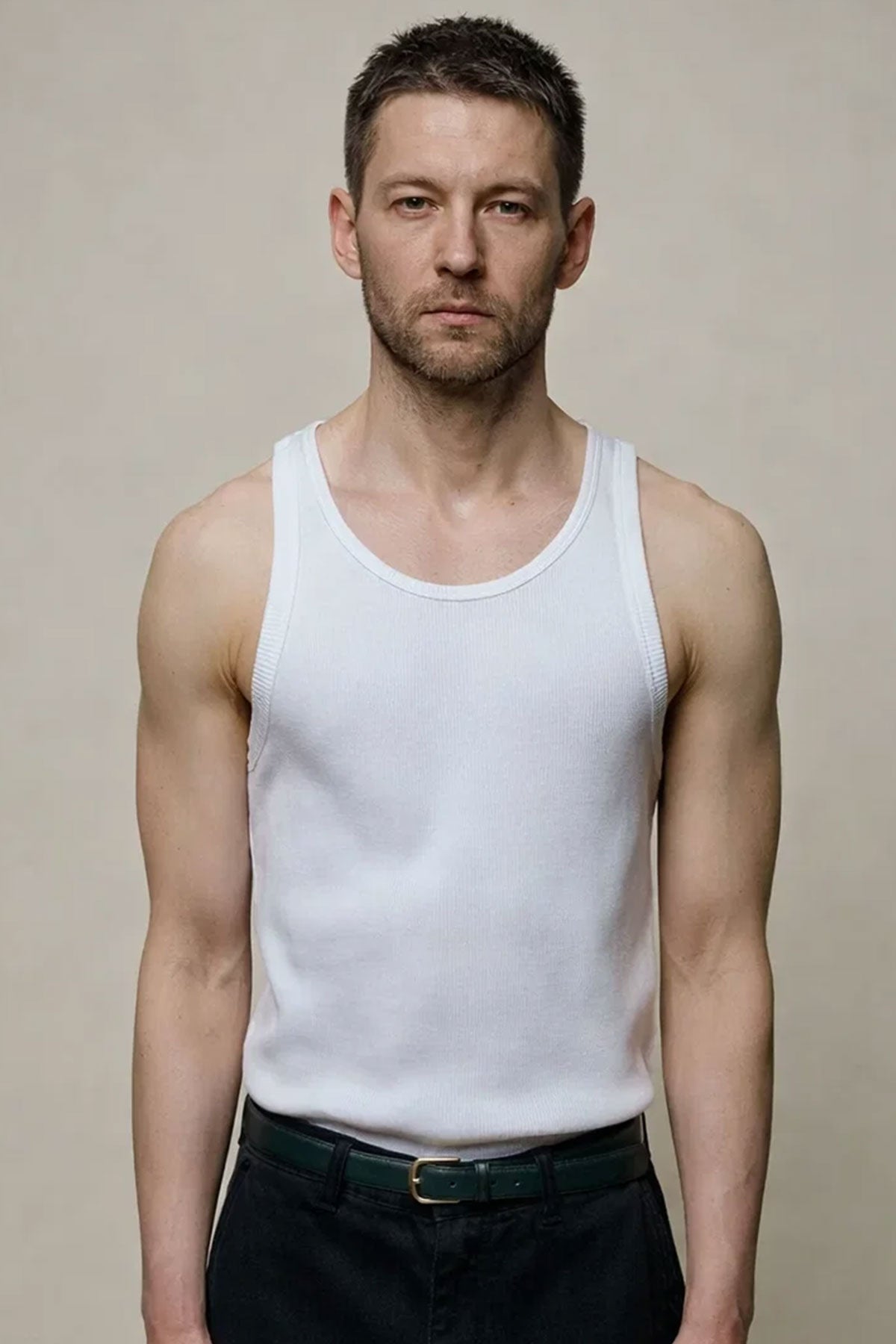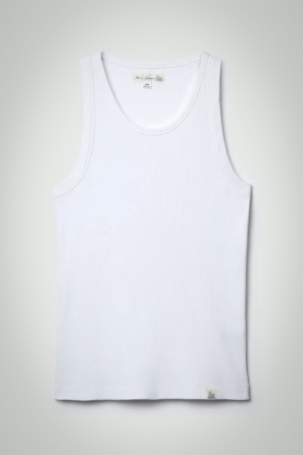 Here is a simple answer. A white ribbed tank top from Merz b. Schwanen.
