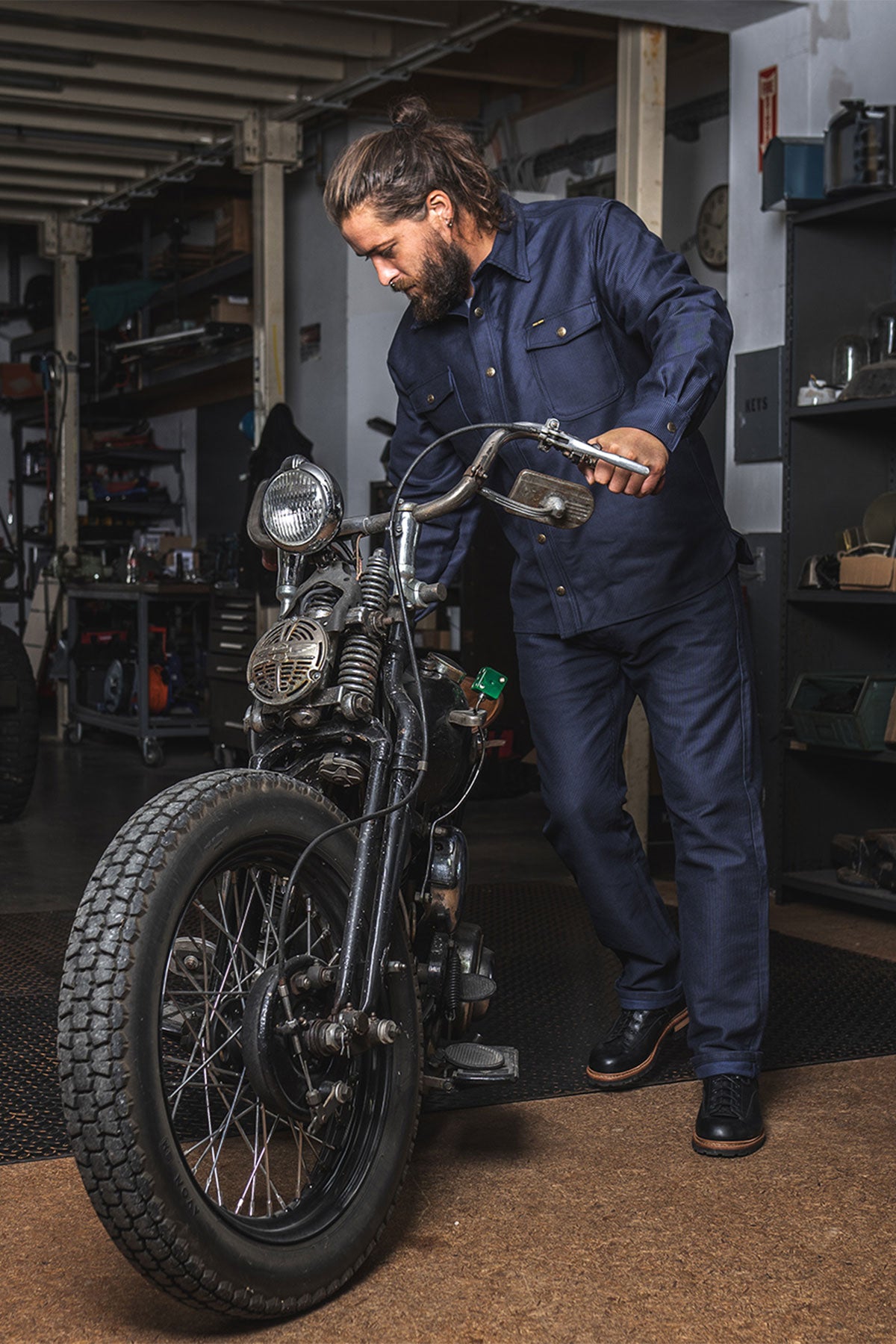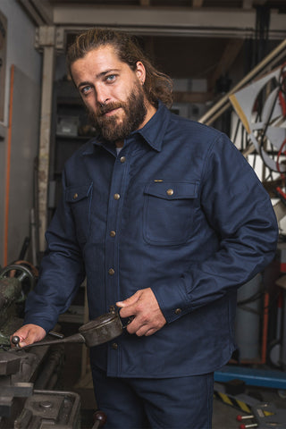 Since the early 20th century, the Hamburg Stripe has been woven into so called Elephant Skin fabric, weighing 520 g/sqm. Once worn in, it develops a beautiful patina. Thanks to its high weft density, the fabric is extremely abrasion-resistant and exceptionally durable.
