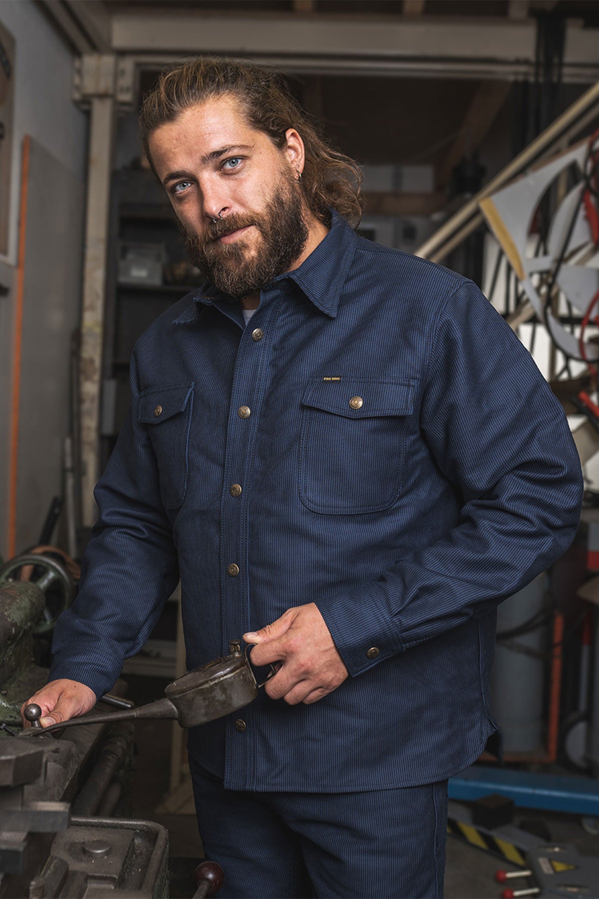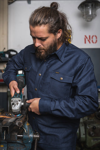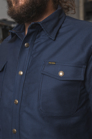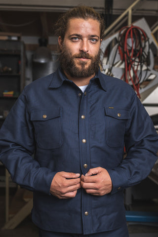Hamburg Blue is a classic, workwear pattern closely associated with the seafaring heritage of the city of Hamburg. Characterized by vertical blue stripes, this timeless pattern later made its way especially within the northern metal and shipbuilding industries.