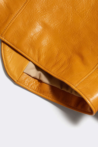 The full vegetable-tanned hide is deeply infused with oils, producing a rich camel tone with a smooth, lustrous surface and a sculptural presence you can feel the moment you touch it. Each hide is individually hand-finished, creating natural variations in tone that shift beautifully with the light so no two coats are ever the same.