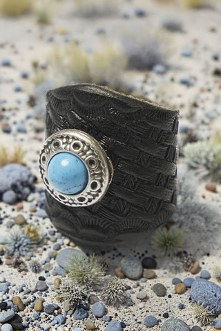 Shangri-La Heritage - Turquoise Black Cowhide Leather Bandana Slider Sale