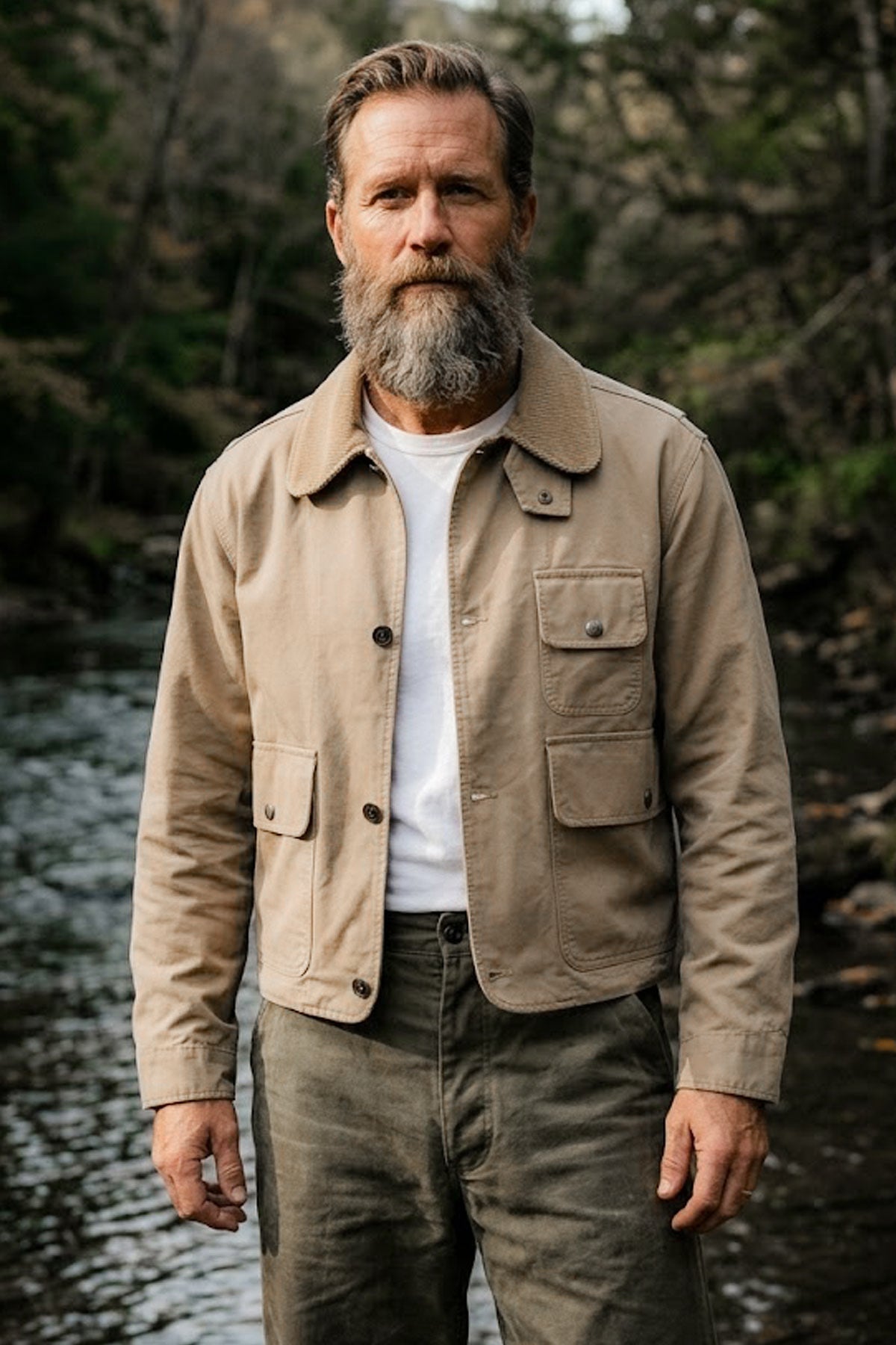 Named after the famed fly-fishing region in New York State, the Catskills Coat is a take on a vintage fishing jacket. This cropped and loose-fitting wading canvas jacket is equipped with a generous number of pockets and features a gusseted shoulder for added range of motion. If desired, cinch up the waist using the cord locks at the side seams.