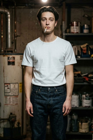 This is it: It's the T-shirt featured in the show 'The Bear' in which Jeremy Allen White stars as chef 'Carmy'! This classic-fit round-neck tee blends effortless style with unmatched quality. Crafted from pure organic cotton using traditional loopwheeler techniques in Germany, its durable 2-thread fabric offers comfort and authenticity. Please check sizing tab before buying.
