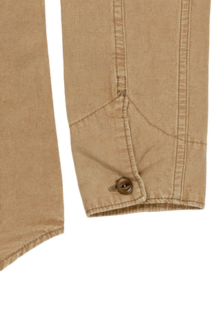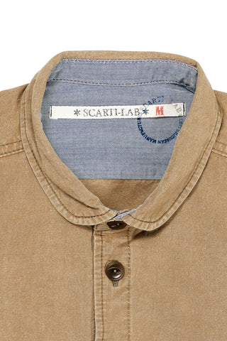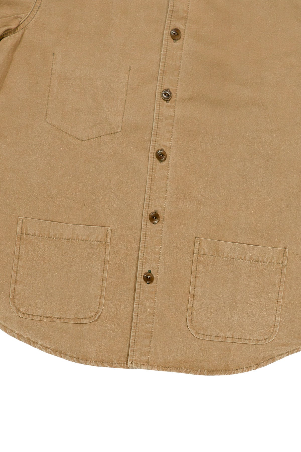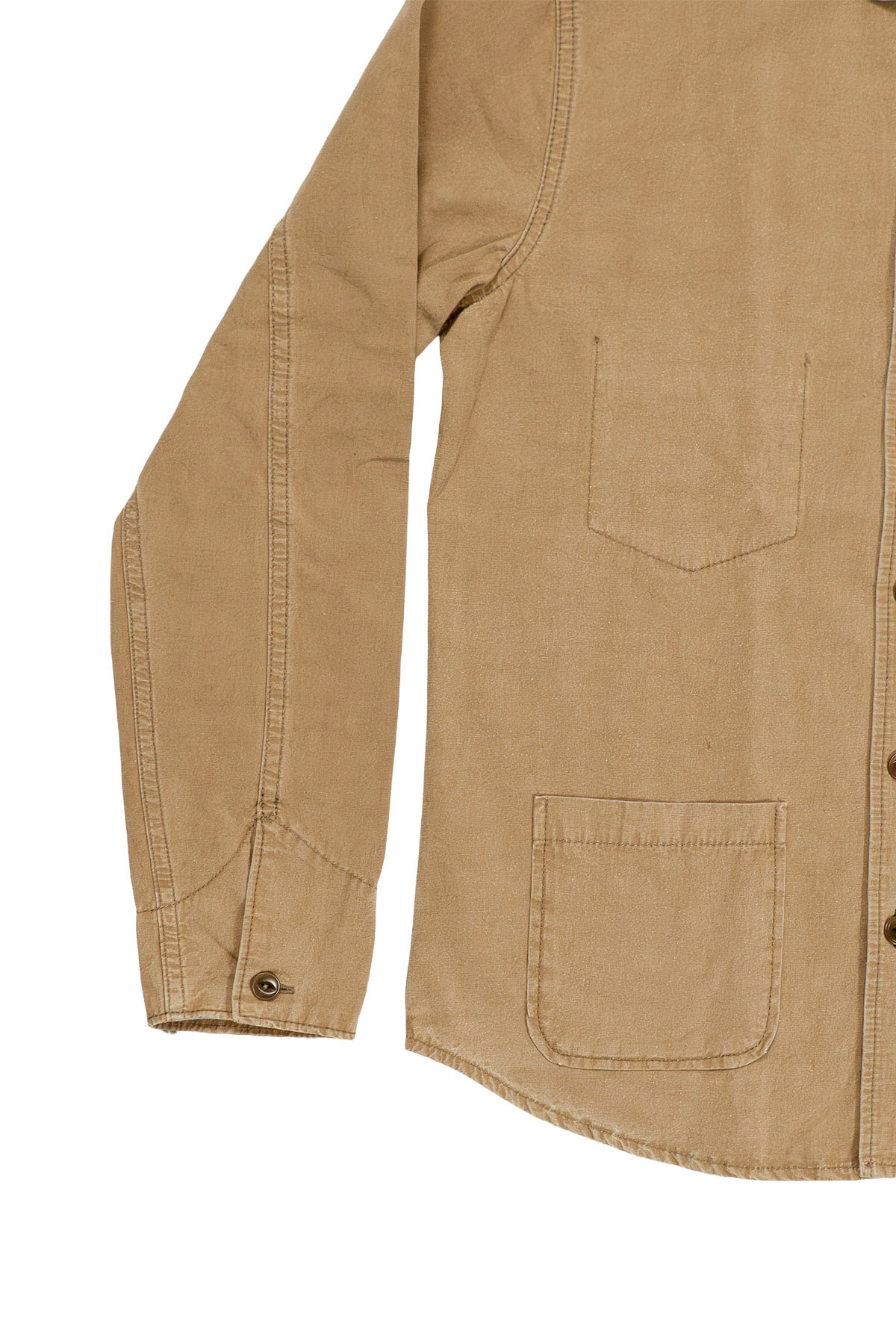 The fabric is cotton hemp poplin. Piece dyed. Washed to look like it has been around before you. A vintage effect, without the trouble of living through it.