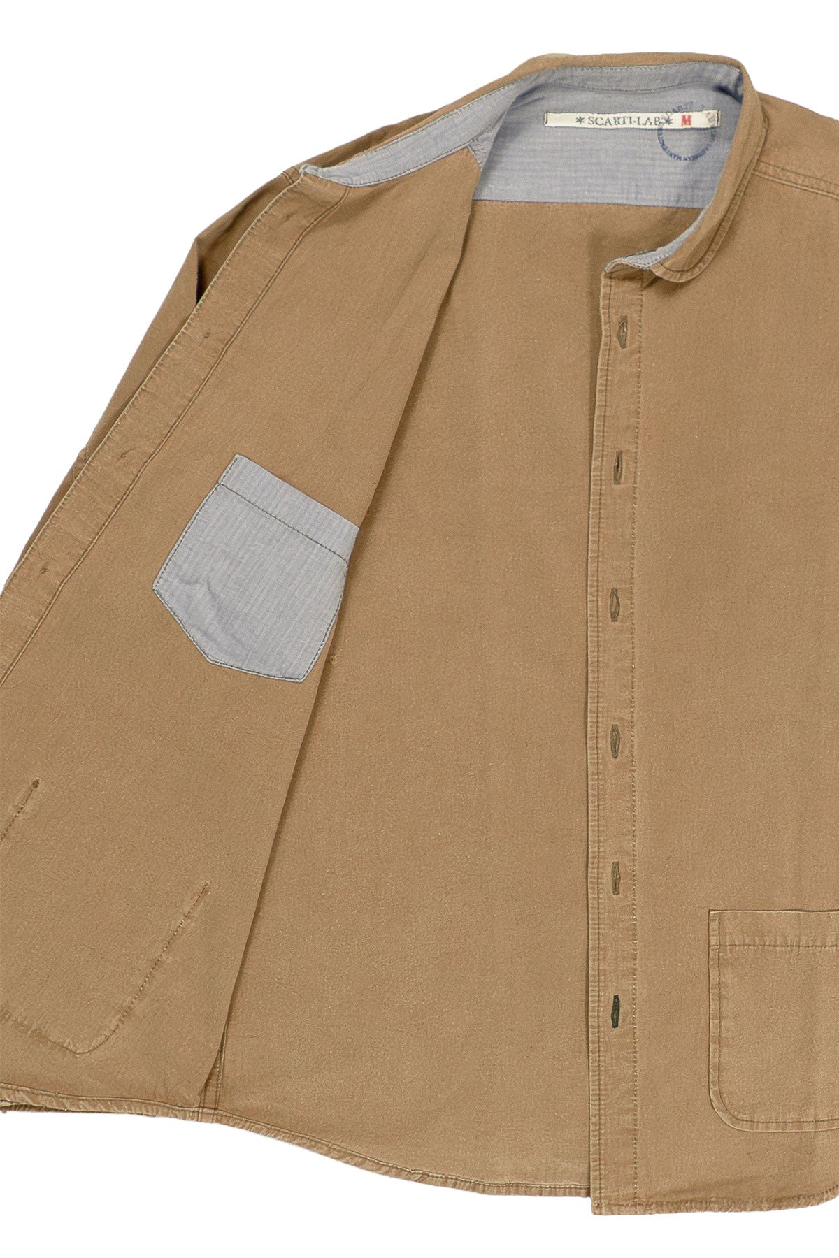 It has a rounded collar. Easy on the neck. Easy on the eyes. Two patch pockets at the waist hold your hands, your phone, or whatever you carry to get through the day. There is an internal chest pocket too. That one is for the things you do not want to lose.