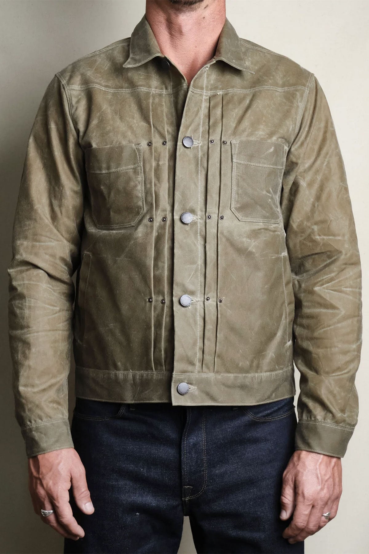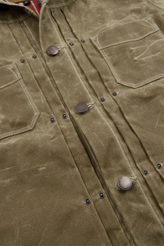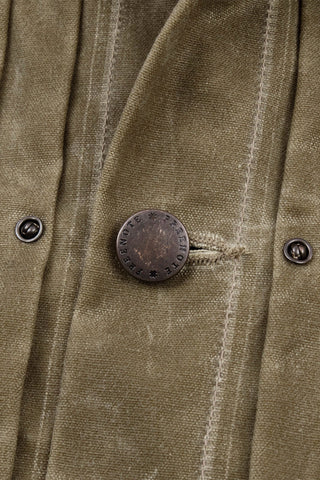 The Riders Jacket, or RJ-1 for short, was one of the first jackets designed by Freenote Cloth. Made with a 10 ounce Martexin waxed canvas it is a unique mix of a classic ranch jacket combined with a riding jacket. The front pleats expand with movement along with the shoulder gussets in the back. Construction highlights include 1/8” stitch details and custom metal hardware made exclusively for Freenote Cloth. The RJ-1 is equipped with Freenote's signature action back for added mobility. We suggest to size up your usual size.