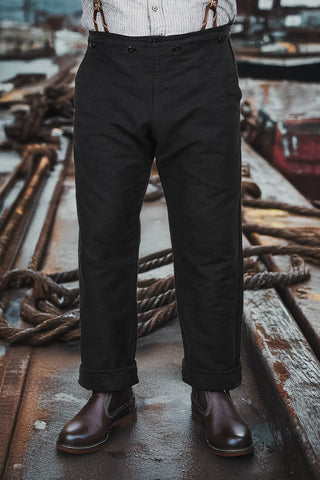 Born from Swedish workwear, developed together with Gyllenhaks Byggnadsvård and built to take a beating. They’ve got the look of a navy trouser but were meant also for the grind of the countryside. Crafted from thick, unbreakable 520 g/m² "Elephant Skin" cloth, because anything less just wouldn’t cut it.