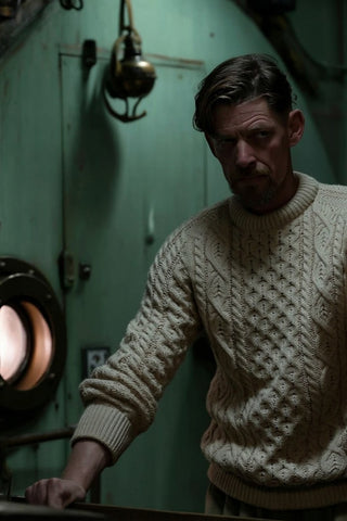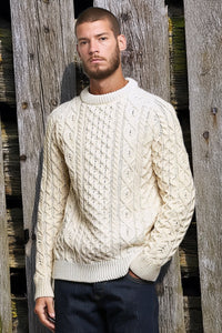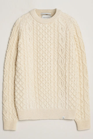 Originally created for fishermen going out in wet windy conditions at sea, a true fisherman's rib needs almost double the yarn of a plain knit jumper of the same size, making it extra warm when the weather closes in. This Hudson Aran is a 5gge chemical free British wool jumper, with natural water repellency and antibacterial properties. Sourced from a British Wool Accredited farm in Yorkshire - just 60 miles from the Peregrine factory.