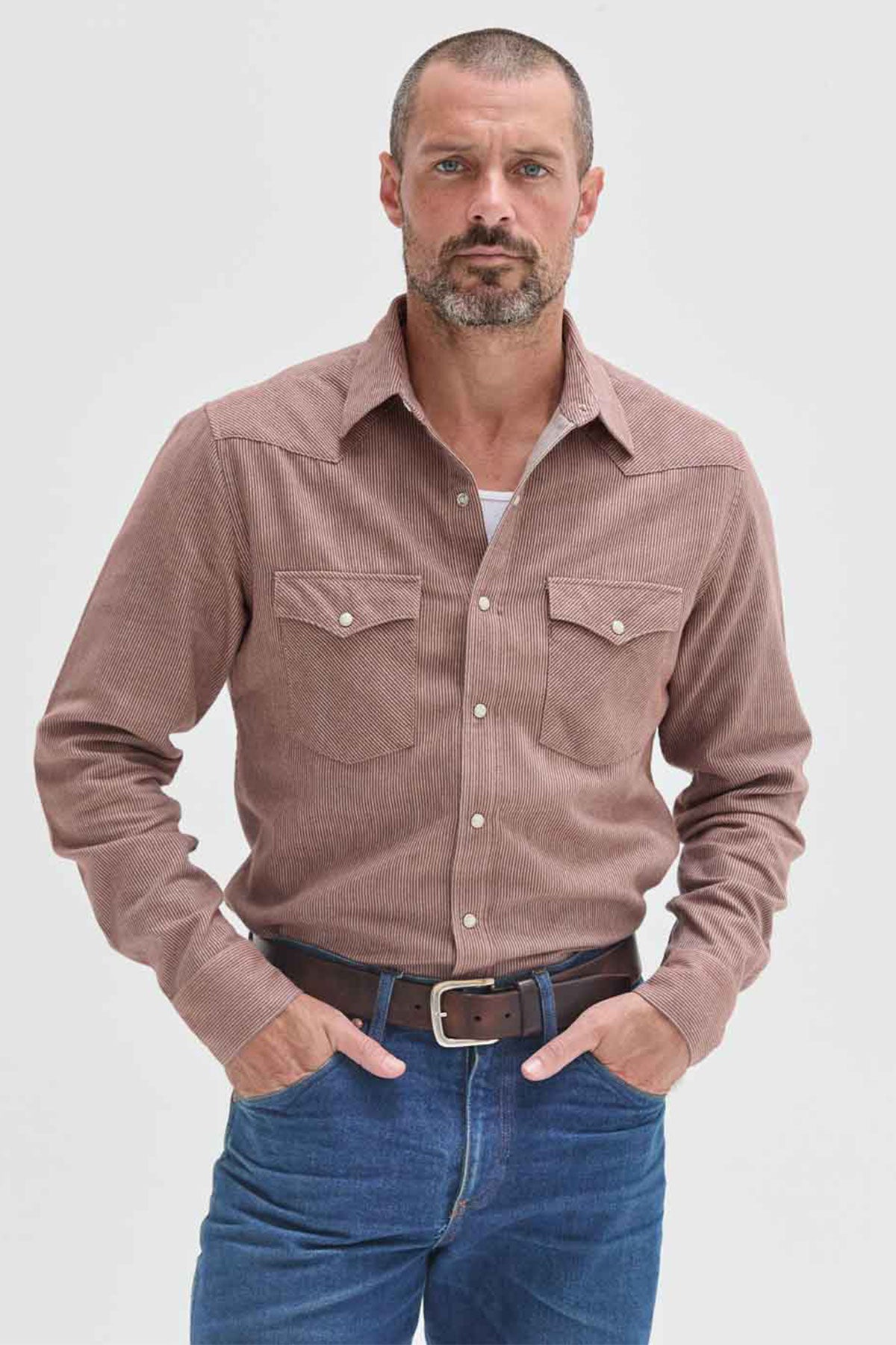 Cut in a tailored fit that still moves with you. Finished with double chest pockets, western yokes, and white marble snaps that feel as good as they look. Even the small things, like the corozo buttons on the collar and sleeve placket, are made to last.