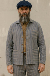 Captain Santors - Cotton Linen Work Jacket - Blue/Brown Stripe - S