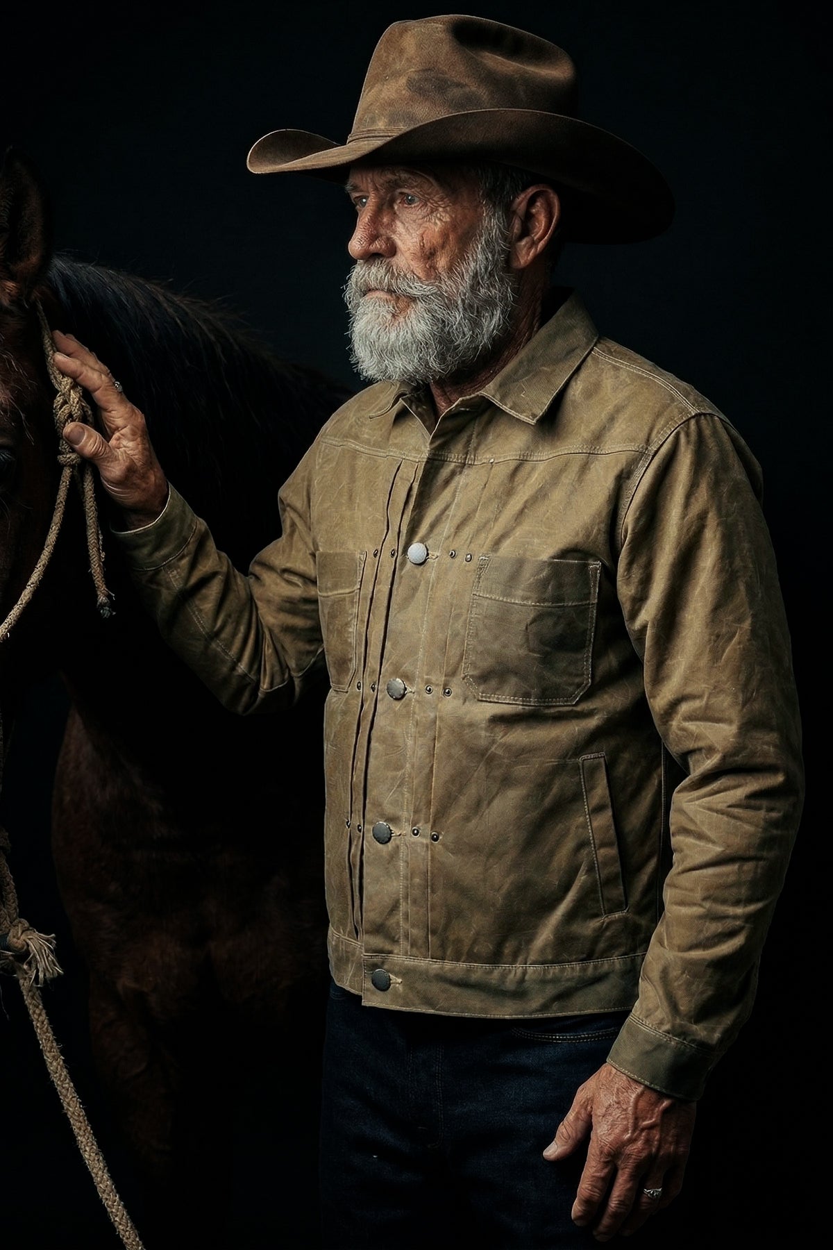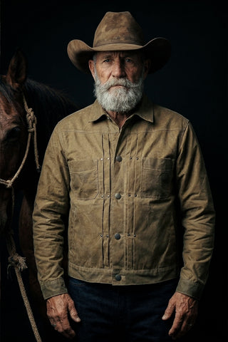 The Riders Jacket, or RJ-1 for short, was one of the first jackets designed by Freenote Cloth. It is a unique mix of a classic ranch jacket combined with a riding jacket. The front pleats expand with movement along with the shoulder gussets in the back. Construction highlights include 1/8” stitch details and custom metal hardware made exclusively for Freenote Cloth. The RJ-1 is equipped with Freenote's signature action back for added mobility.