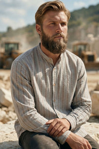 First, Prequel disassembled this fabric and analyzed the threads used. Based on the results of their analysis of 100-year-old yarns, they then created an original fabric for the present day, doubling the number of warp and weft yarns. This results in a firm and sturdy fabric with a degree of filling. This band collar shirt is definitely a piece that you will love for a long time. Please enjoy its charm.